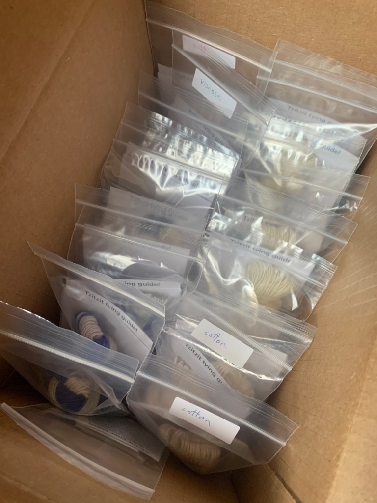 - The lease ties are made of scraps from previous batches of tzitzit string.
