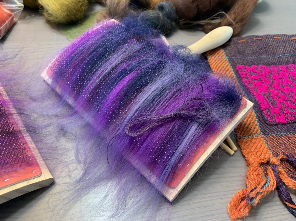- Sparkles & custom colors have an extra step of blending the fibers using hand cards.