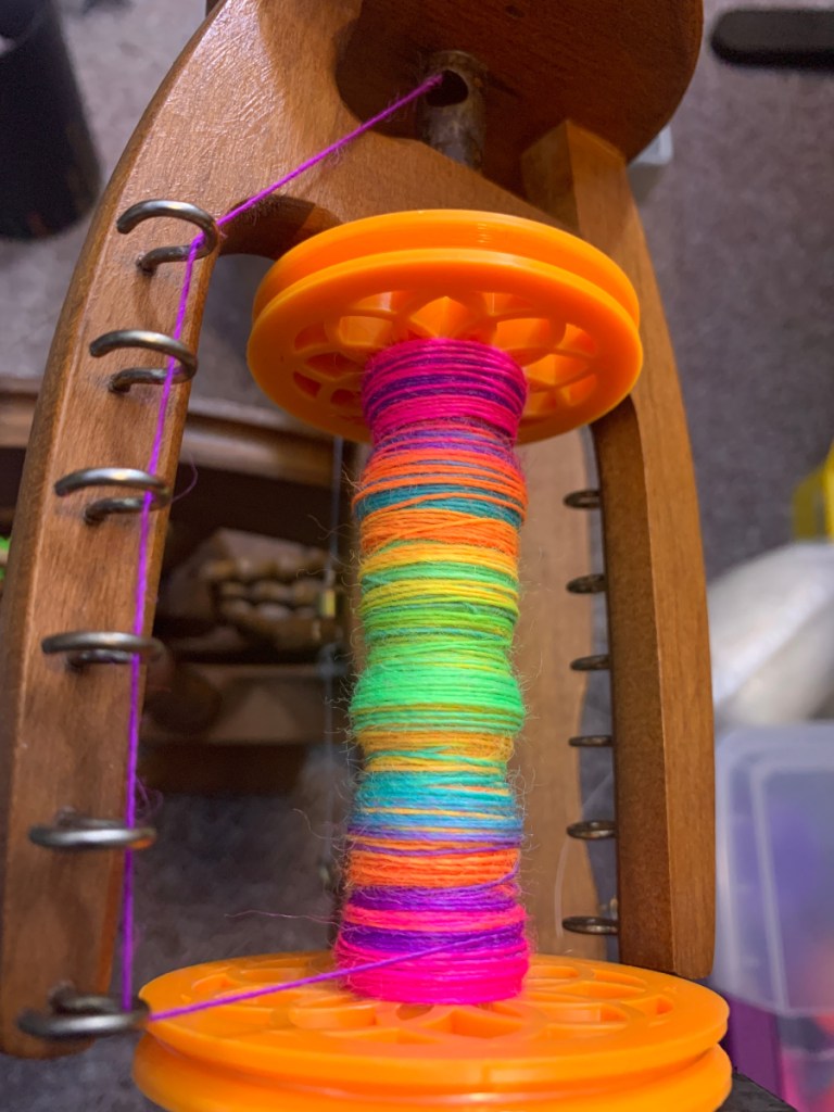 There’s a lot of kinetic (and spiritual) energy in this single thread! I let it rest for a week so the energy can settle. This also helps the plying go more smoothly.