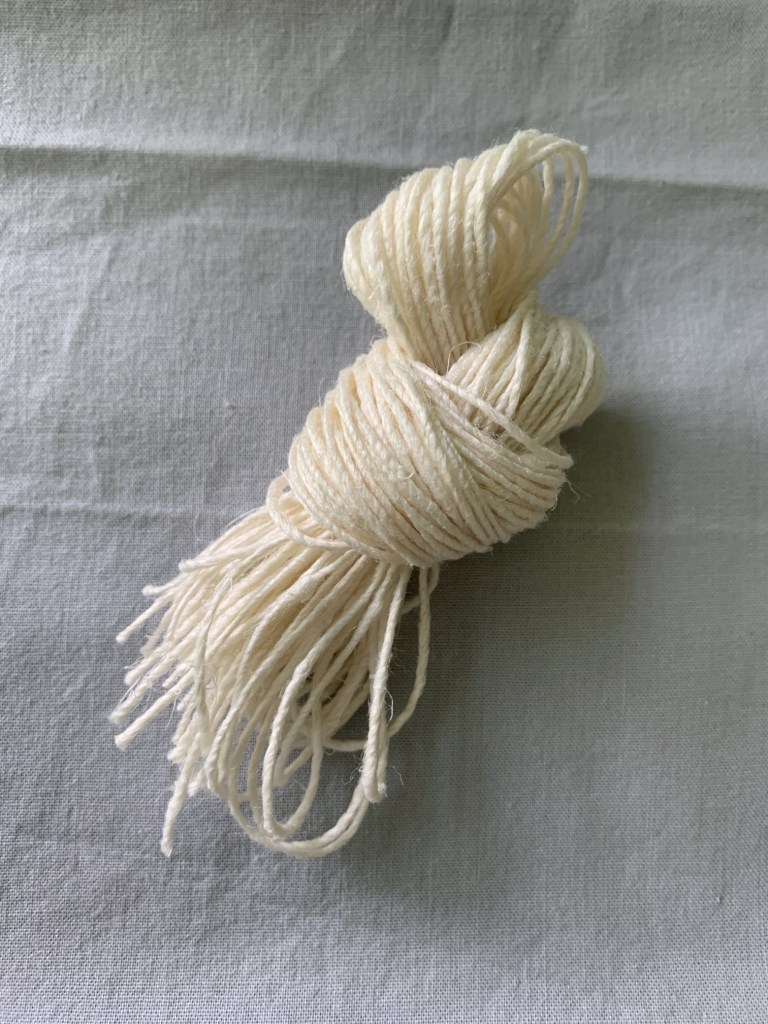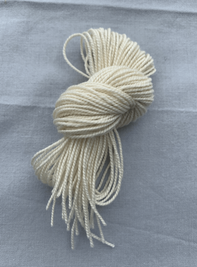 – Undyed Cormo wool from Apple Rose Farm in NY